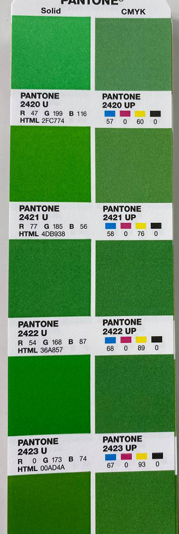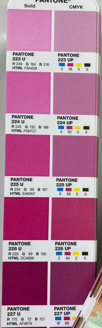 Дизайнерам, які працюють з поліграфічною продукцією, ми рекомендуємо, мати власний каталог пантонів, що допоможуть підібрати правильні чисті кольори під час макетування, а також на моменті створення бренд буку виключити ті кольори, які не мають схожих аналогів в кольоровій моделі CMYK.