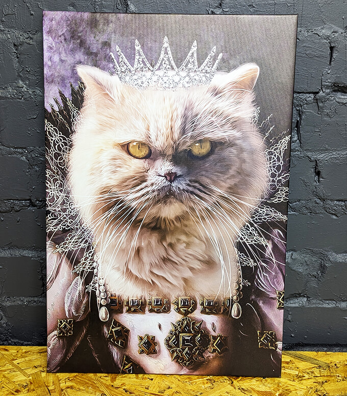 Замовлення картини на холсті це замовлення картини на підрамнику. Картини на підрамнику — це популярний спосіб оформлення ваших фотографій або фотографій ваших улюбленців. Ми використовуємо метод галерейної натяжки для картин на холсті. Це метод натяжки холста, при якому його краї згинаються і закріплюються ззаду підрамника. Таким чином, бічні частини картини залишаються чистими і без видимих скоб або цвяхів. Це дозволяє використовувати картини без додаткового оформлення.