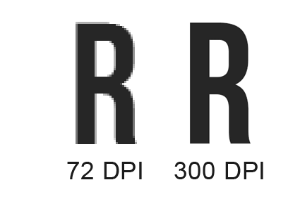 Визуально мы постарались отобразить как будет выглядеть картинка на печати в 72 dpi и 300 dpi.
